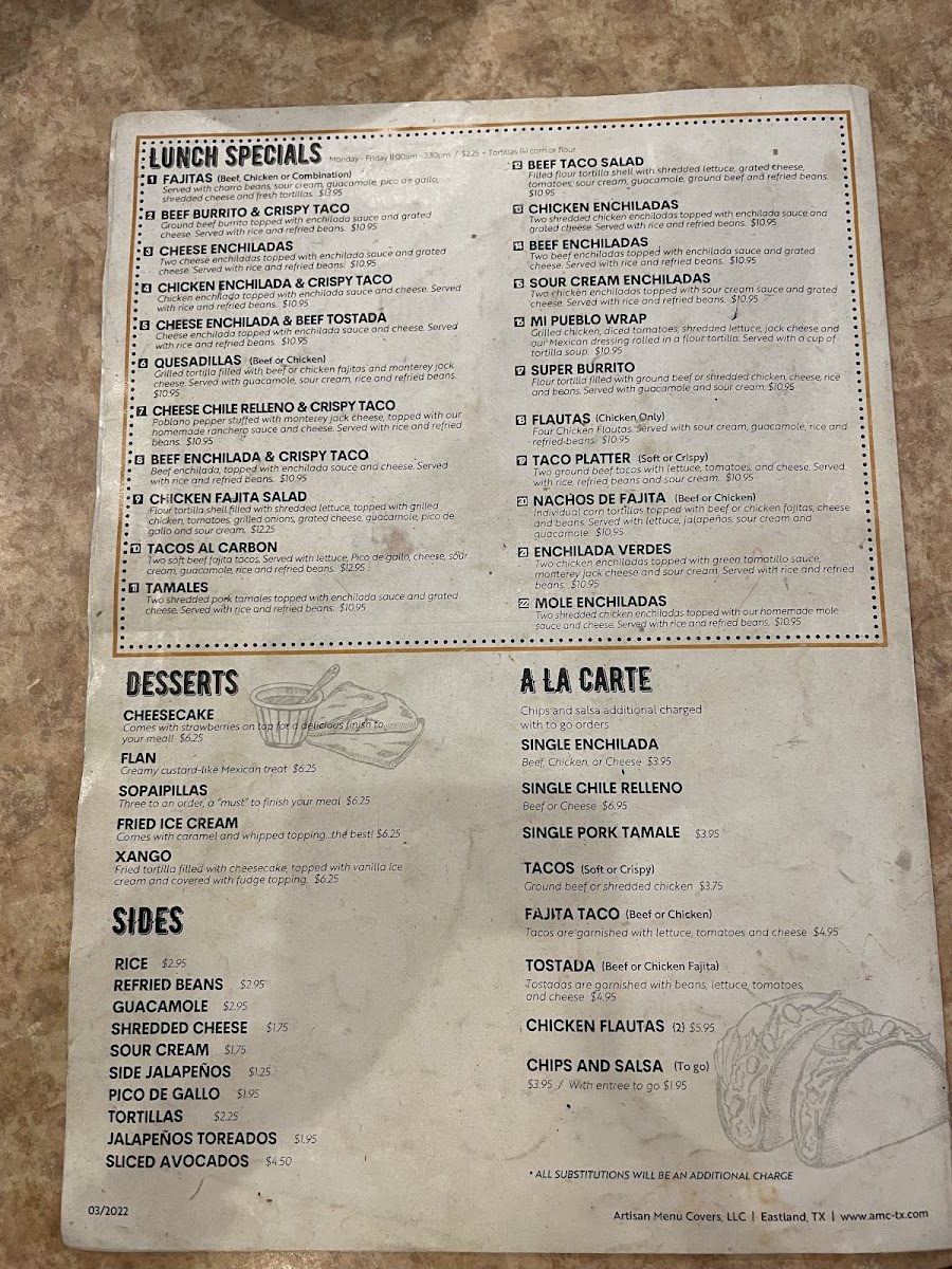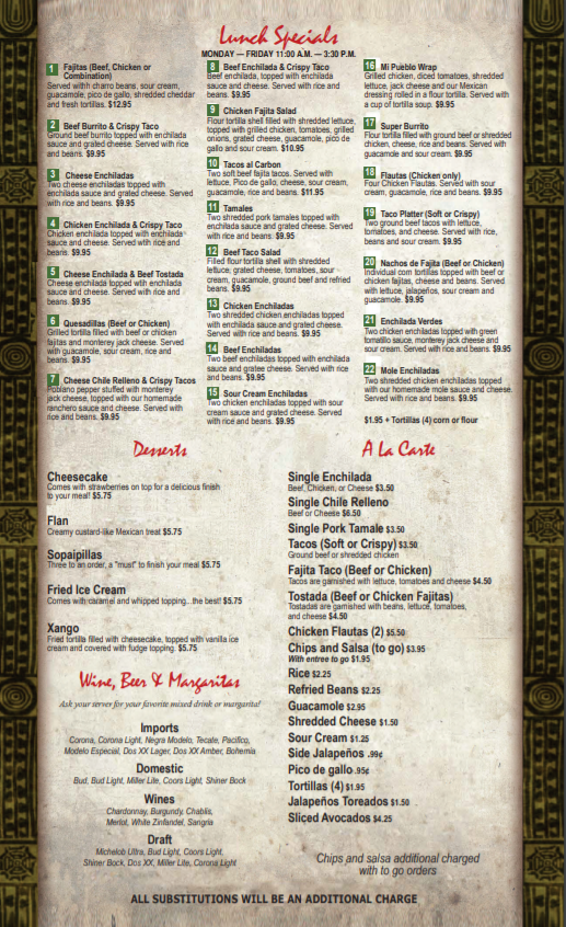 8 Oz. thin cut ribeye asada, two cheese enchiladas. Served with rice, refried beans, pico de gallo, and guacamole.
