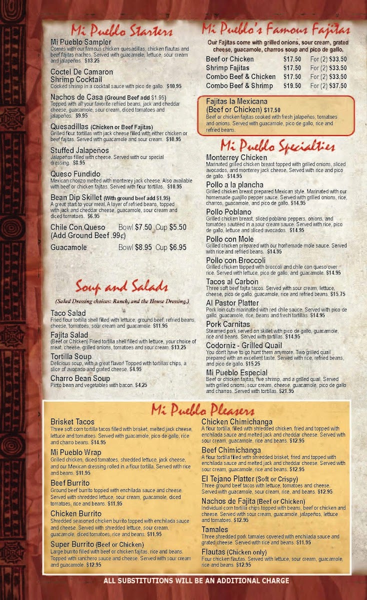 Chopped chicken breast or chopped beef steak. Sautéed with tomatoes, onions, jalapeños & charro beans. Topped with melted jack cheese & sliced avocados